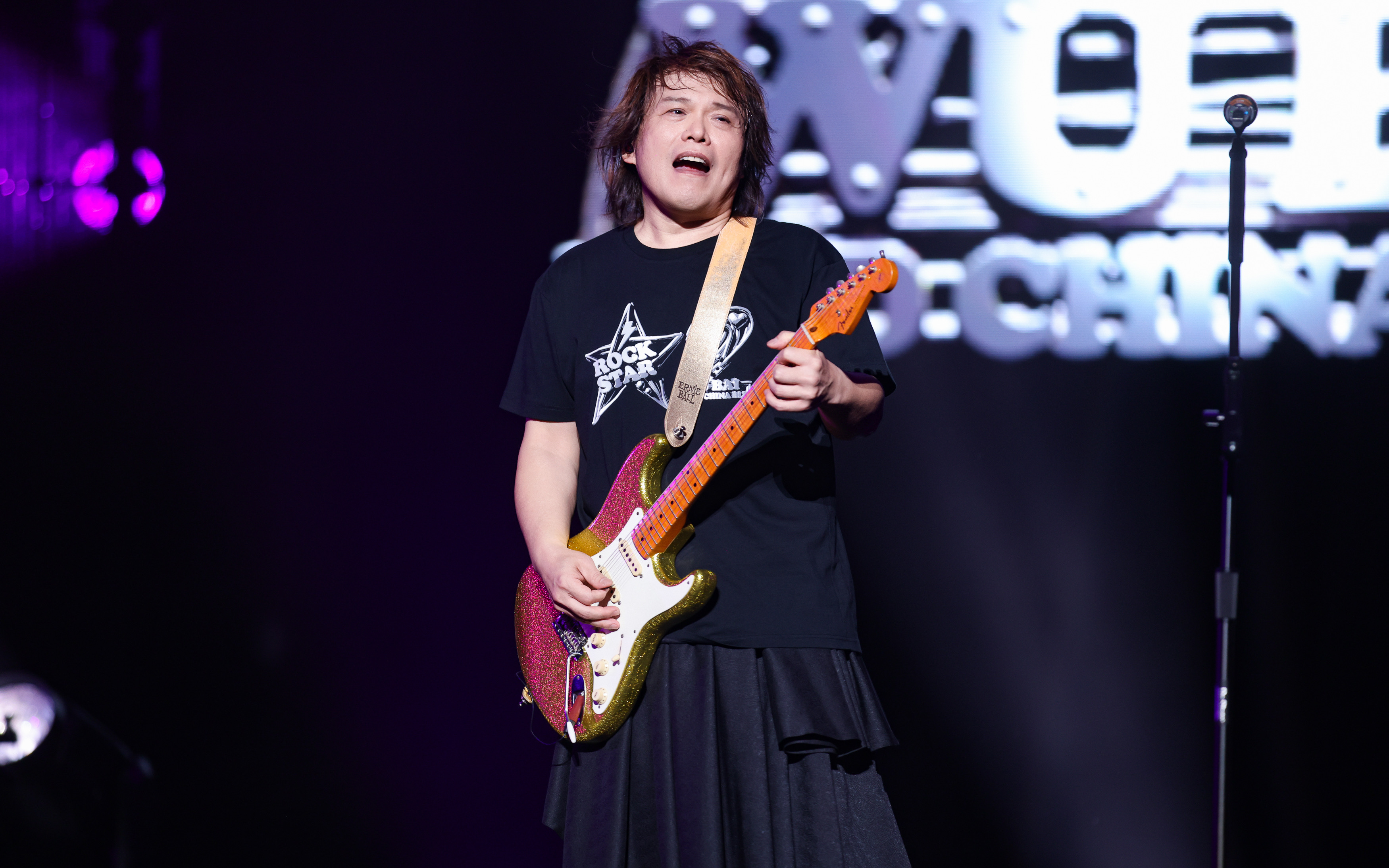 伍佰仍因此标志性长衫以及舒畅淋漓的吉他solo抑制全场。 万人KTV全场所唱